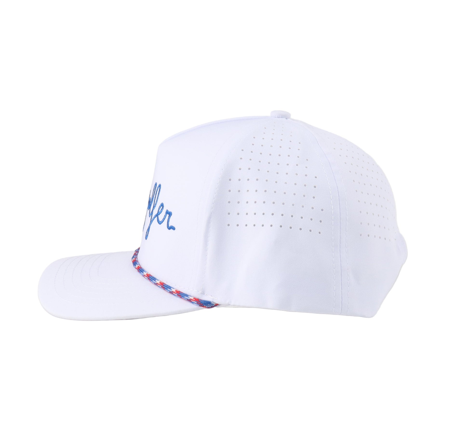 The White Caps Performance Hat (white with red/whit/blue rope)